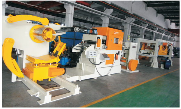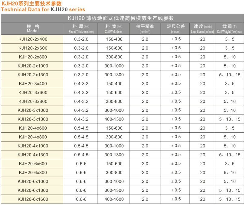 KJH20地面式薄板低速简易开卷整平横切生产线薄板数控地面式低速开卷校平剪切线可以做开卷,整平,定尺,横剪,叠料等工作。它主要包括上料小车,开卷机、校平主机、限位装置、编码器定尺、剪板机、输送工作台、气动排料架、卸料工作台、液压系统、电气控制系统等组成。该生产线是将冷轧钢卷板、镀锌卷板等开卷校平剪切成各种规格的定尺板材。